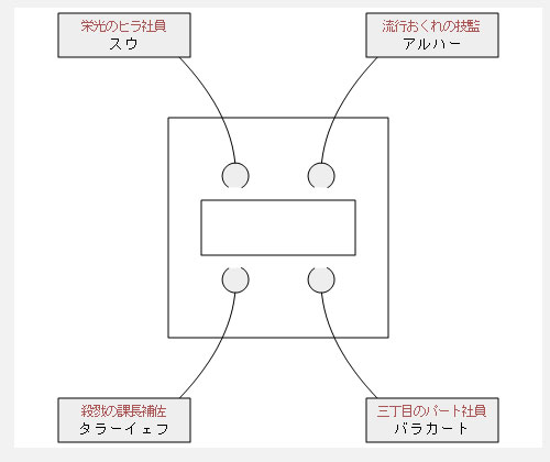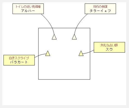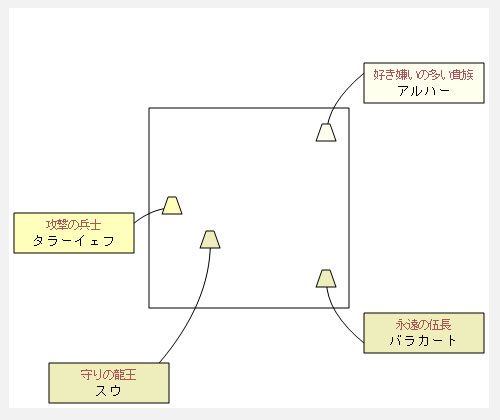 お借りしたのはスウ@匈歌ハトリさん、 タラーイェフ@ささおか梓水さん、 アルハー@茶巻らずさんです。